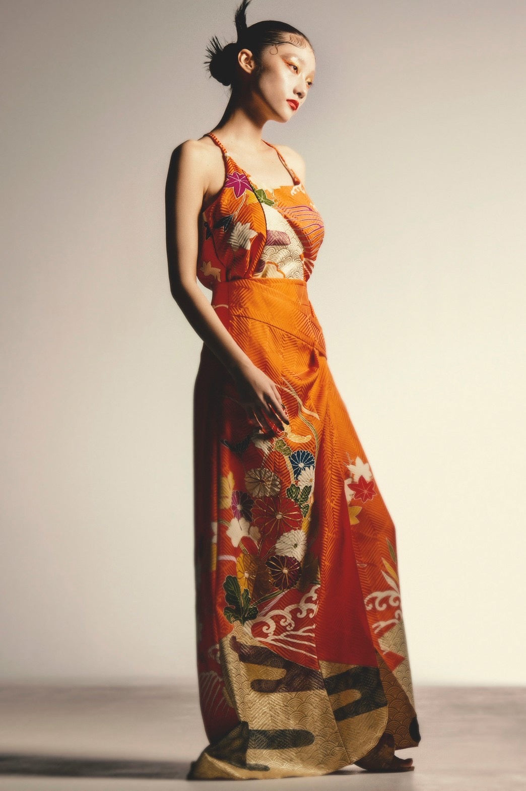 DOUBLE RIBBON JUMPSUIT-AZUKI BROWN