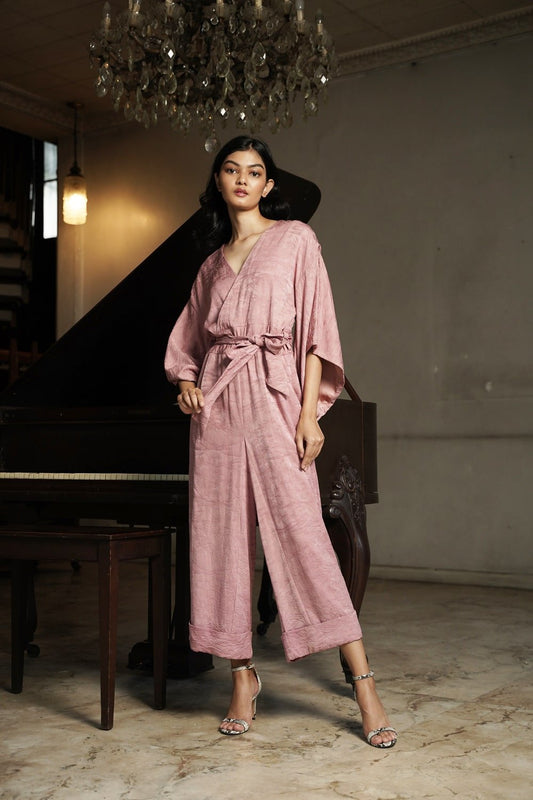 DOUBLE RIBBON JUMPSUIT-OLD ROSE