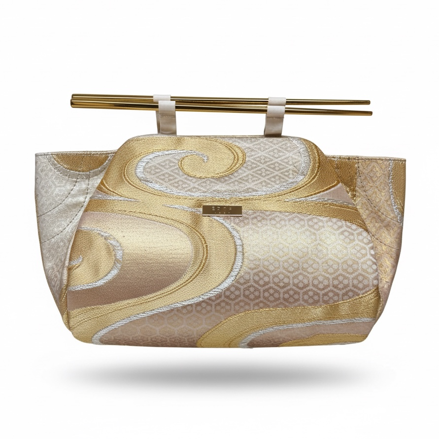 Crafted from a vintage Japanese obi, this piece gives new life to traditional textiles through contemporary design.