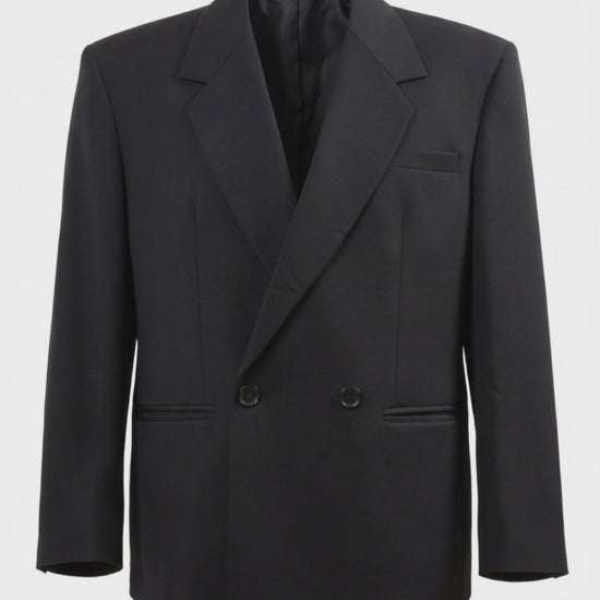 this double-breasted jacket embodies quiet power and architectural precision.