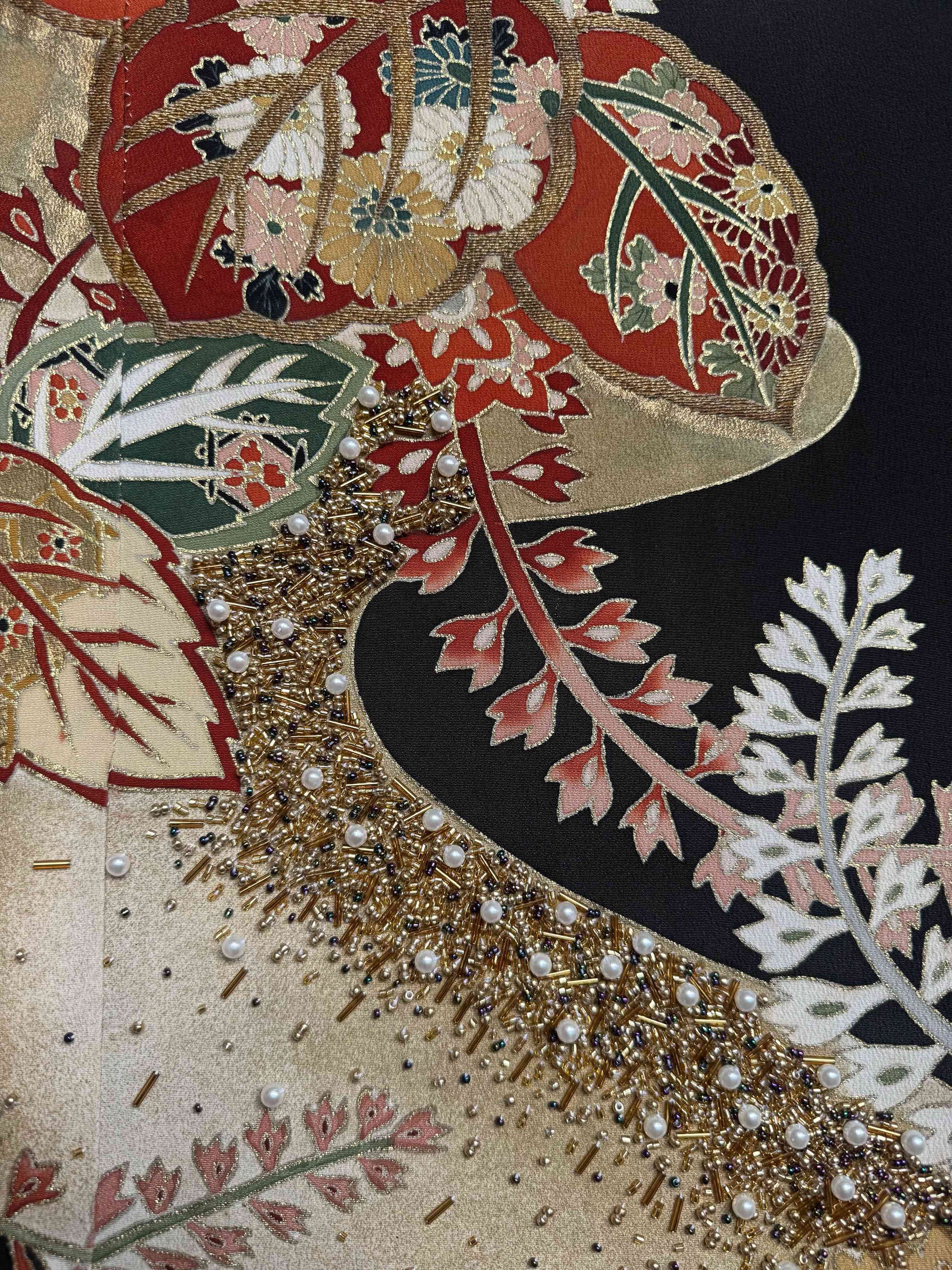 • Intricate hand-beaded embroidery, stitched bead by bead