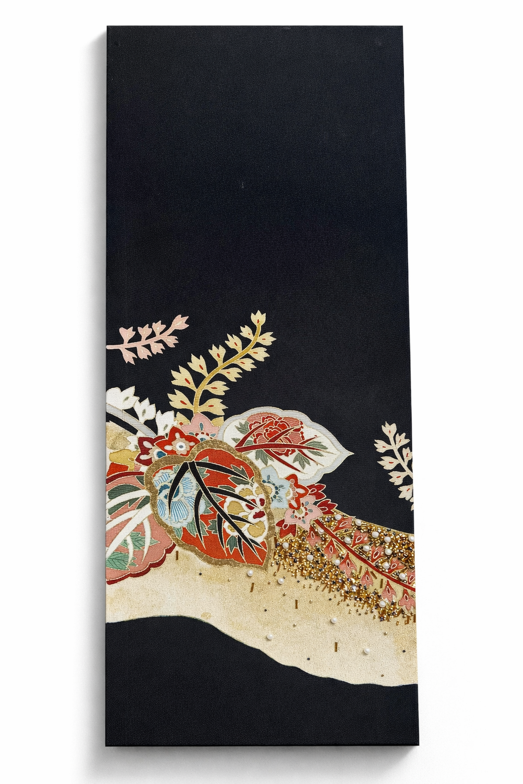 • Created from authentic vintage Japanese obi textiles, originally woven for formal kimono